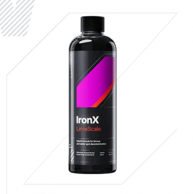 IronX 水垢安全、有效且易于使用,可恢复油漆、玻璃、车轮和其他外表面的透明度和纯度,确保您的车辆保持完美、专业的表面处理。